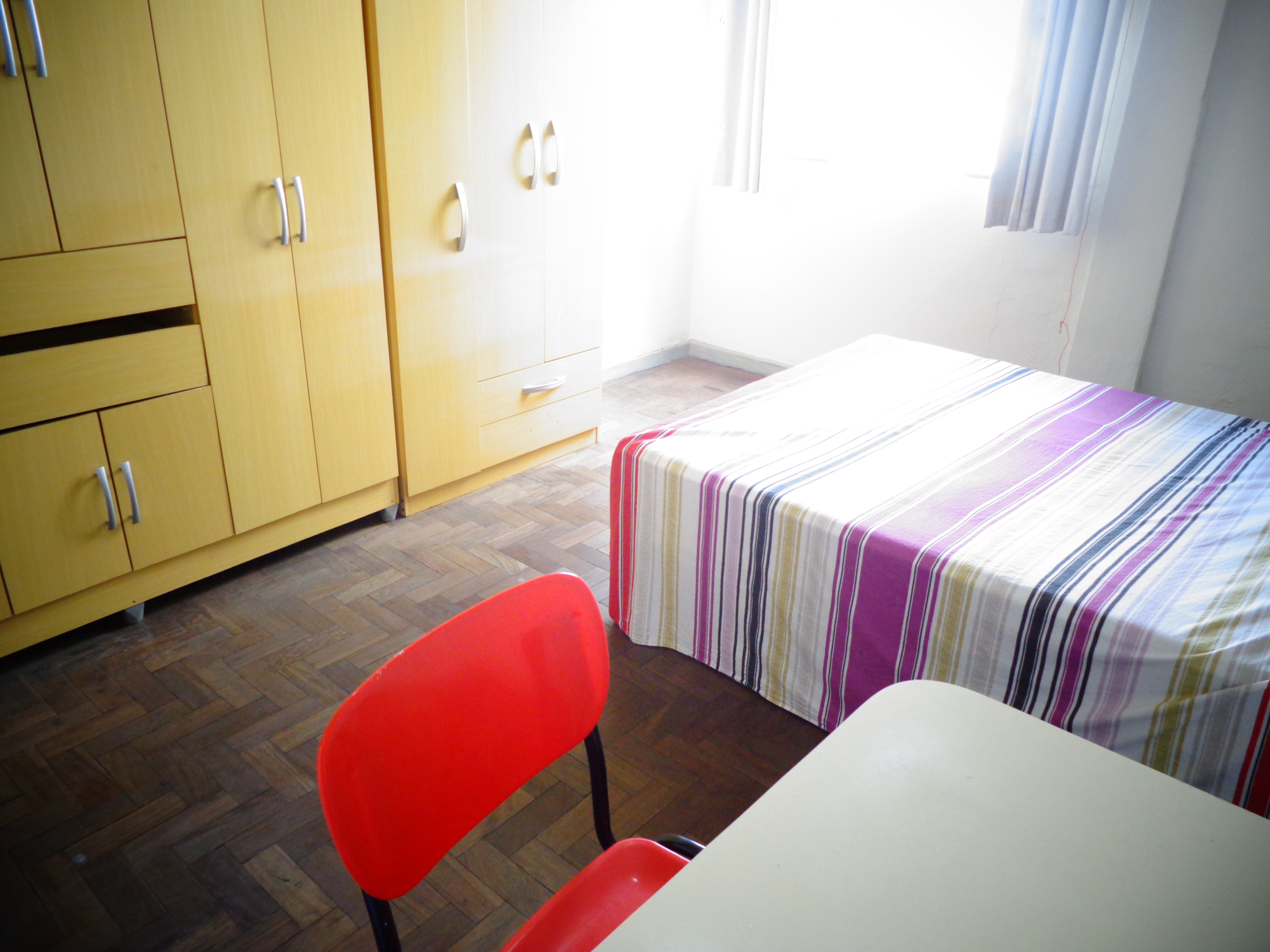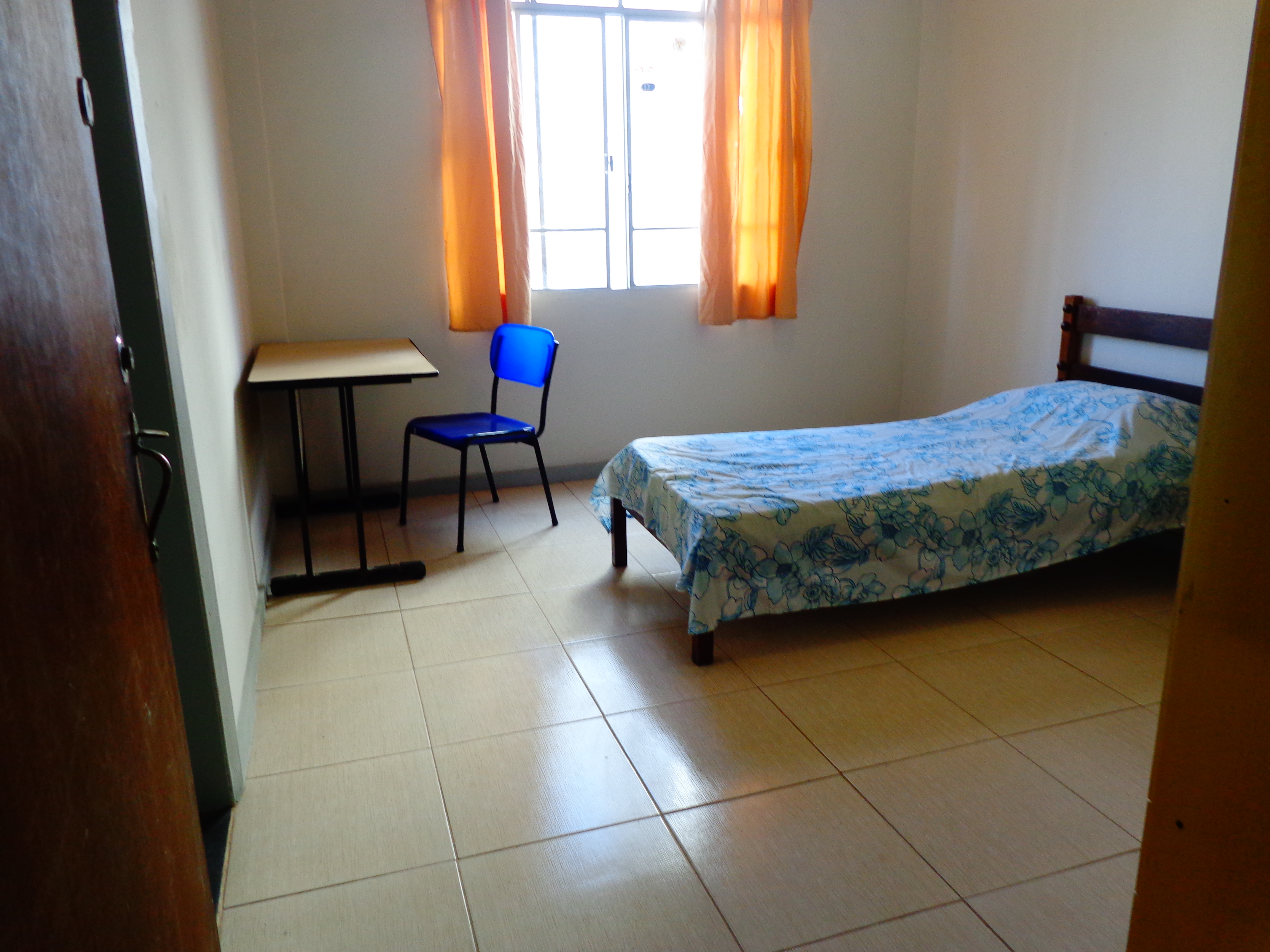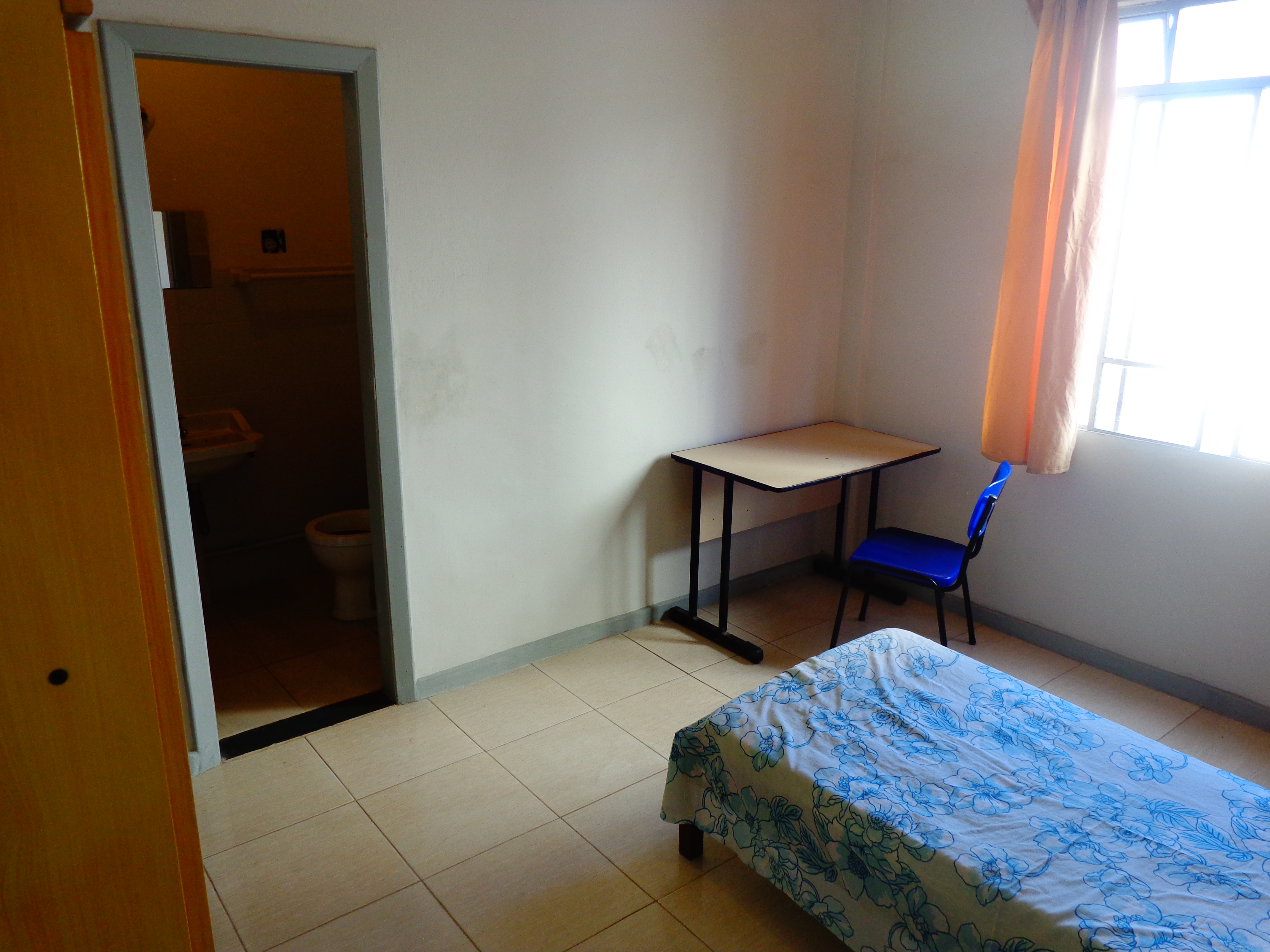 Oferecemos, além dos quartos comuns, com banheiro, uma cozinha de uso comum, modesta, mas útil. Temos também alguns quartos com área de cozinha interna, onde o morador pode colocar seu próprio fogão, se desejar.