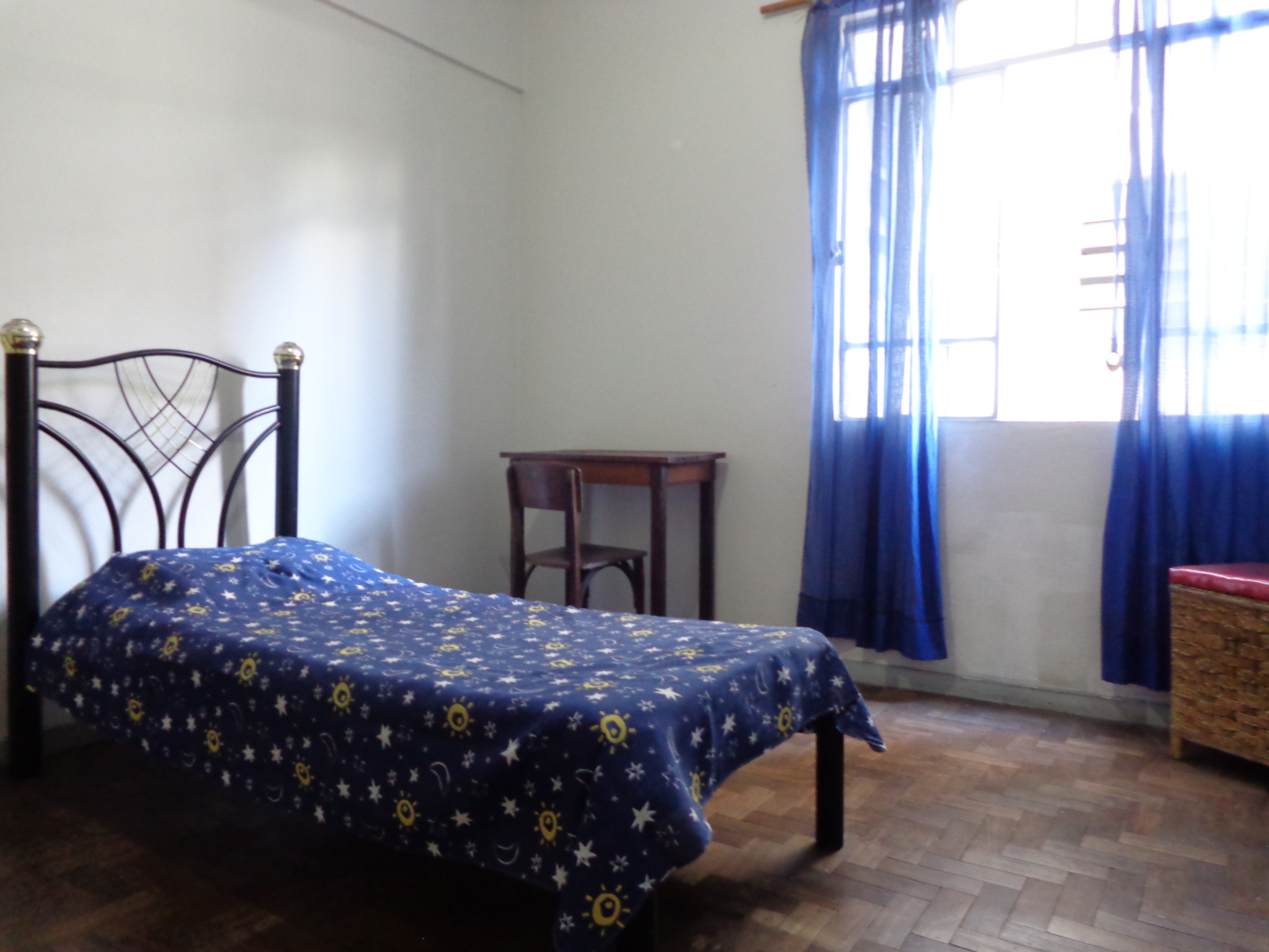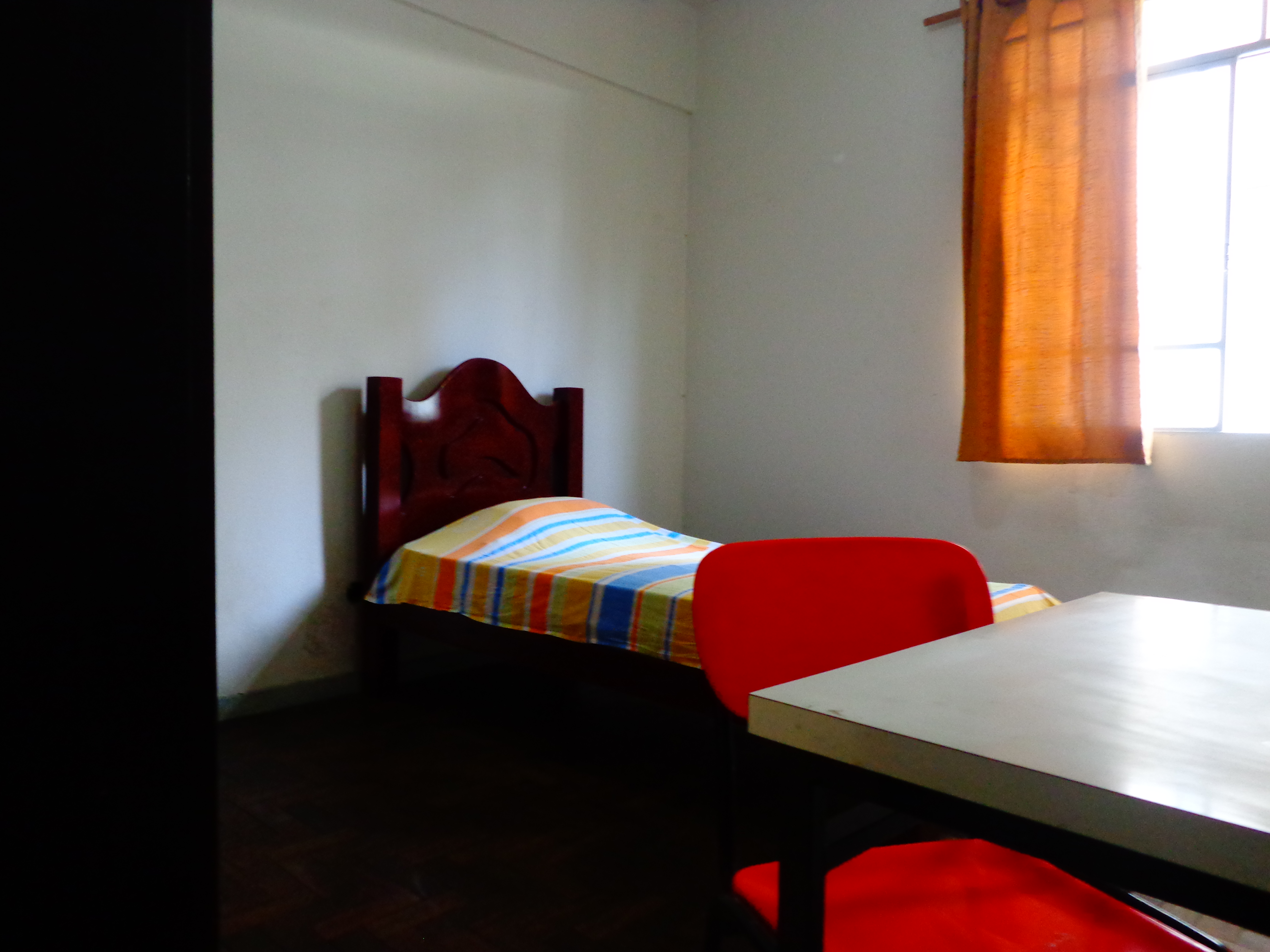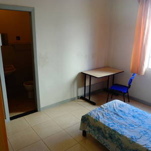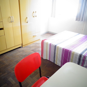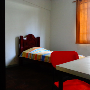 Oferecemos, além dos quartos comuns, com banheiro, uma cozinha de uso comum, modesta, mas útil. Temos também alguns quartos com área de cozinha interna, onde o morador pode colocar seu próprio fogão, se desejar.